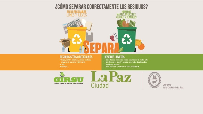 Recorda que a partir de Abril, desde el Gobierno de la Ciudad de La Paz, vamos a intensificar la Gestión Integral de Residuos Sólidos Urbanos secos y húmedos