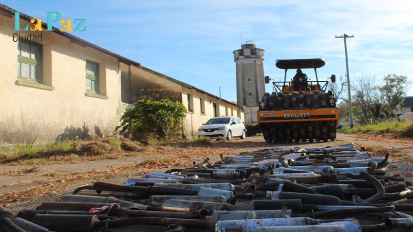 Por su lado, Duval Müller, Secretario de Gobierno, resaltó que “estos caños de escape son productos de los operativos de tránsito que se realizan en conjunto con la Policía Provincial. La ordenanza nos habilita a retener vehículos, rodados y/o motovehículos sin caños de escape o con caños de escape adulterados y luego remitirlos al corralón, la persona para retirarlo tiene que venir con el caño de escape adecuado para el vehículo y estos alterados son aplastados para evitar ruidos molestos”.