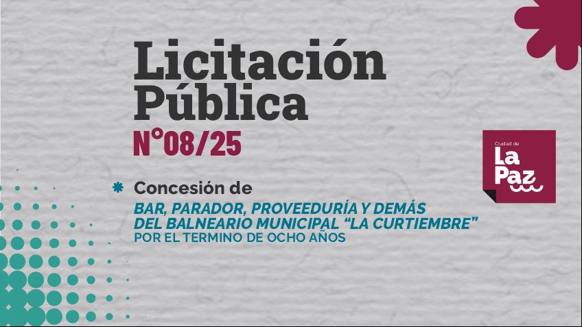La Municipalidad de La Paz convoca a la Licitación Pública Nº 08/25 para otorgar en concesión la explotación comercial del bar, parador y proveeduría del Balneario “La Curtiembre”, por un plazo de 8 años.