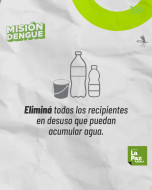 La Dirección de Ambiente recuerda a la comunidad algunas recomendaciones importantes para prevenir la reproducción del mosquito Aedes aegypti, transmisor del Dengue: