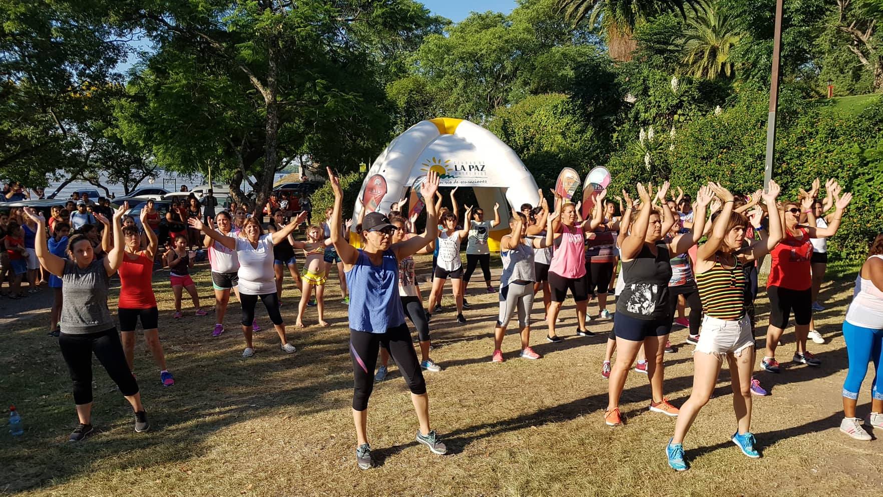 Con gran éxito, los profes danzaron con hermosas coreografías que fueron imitadas por las decenas de personas que se acercaron a pasar una tarde combinando la actividad física con el baile con la mejor postal, el Río Paraná.